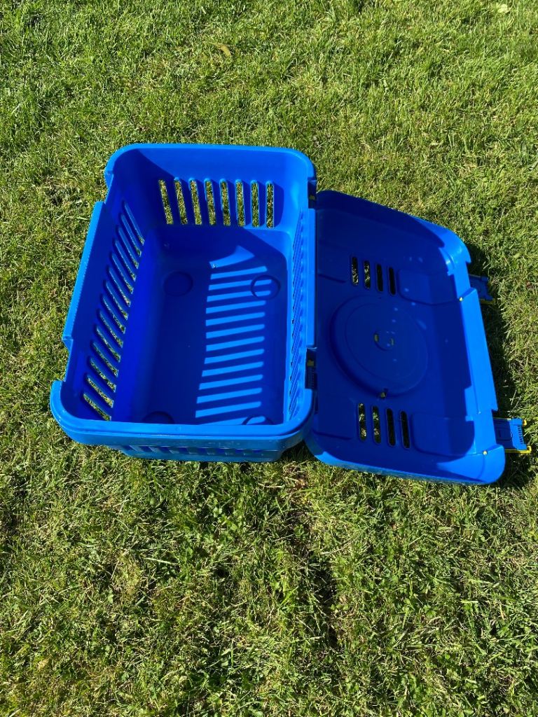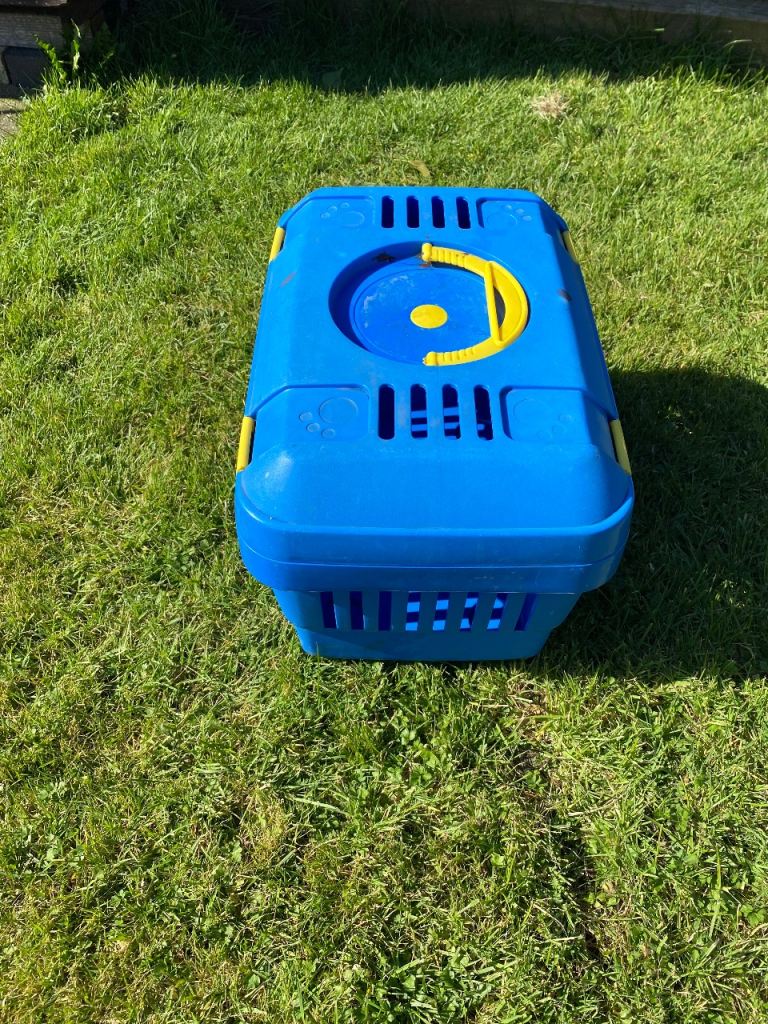 Blue pet carrier, good condition, L 48cm , W 33cm H 33cm , market Harborough area