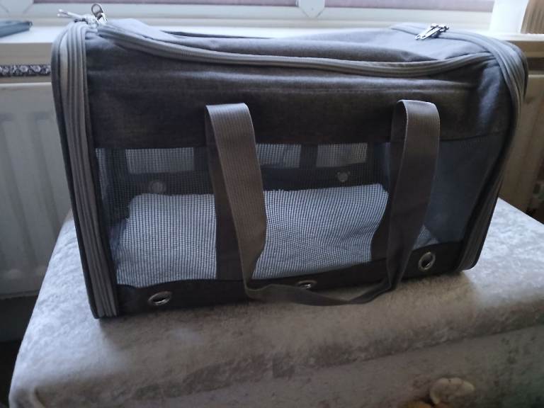 Light weight pet carrier. It has a padded base, shoulder strap and hand held strap. It has vented sides so your pet can see through. Used once to collect our pet and transport him home. In perfect condition,like new.