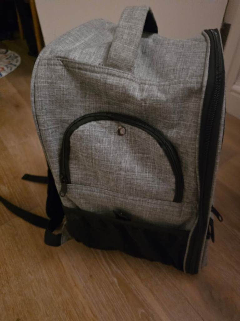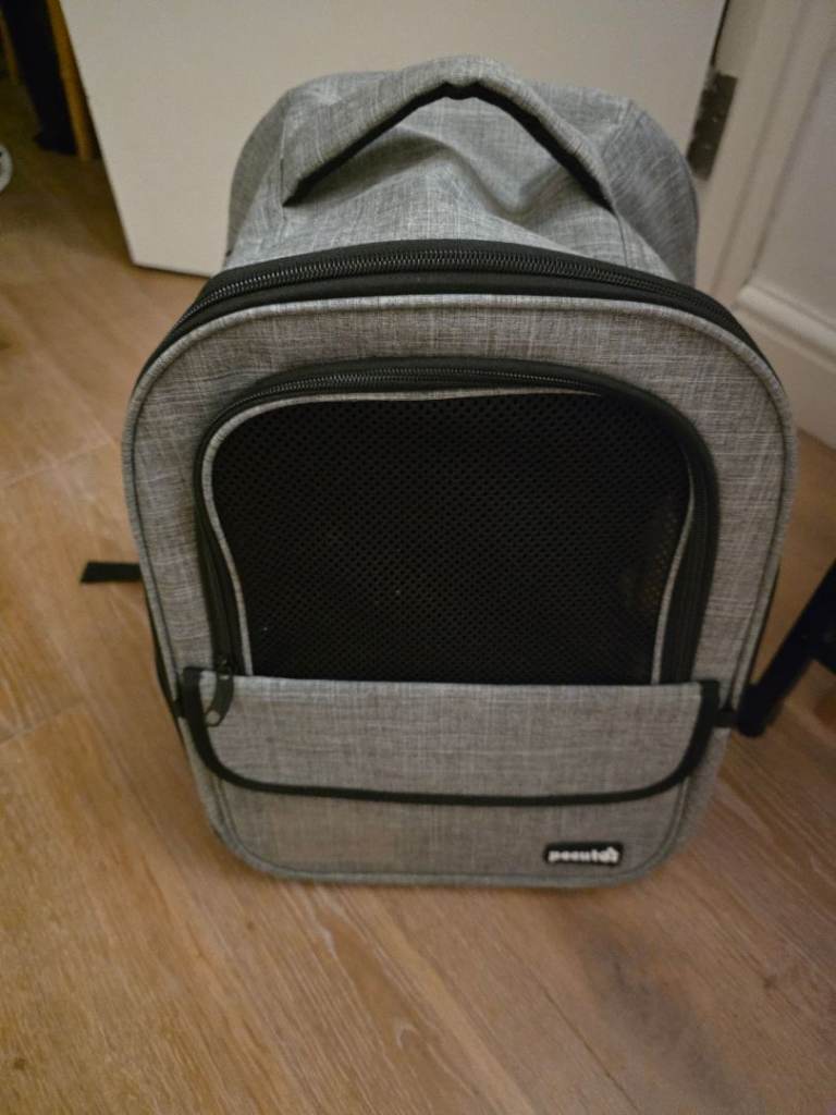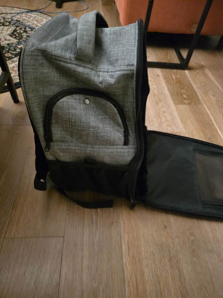 Super comfortable and convenient carrier for small to medium pets. Lightweight but sturdy, lots of pockets. Good ventilation.