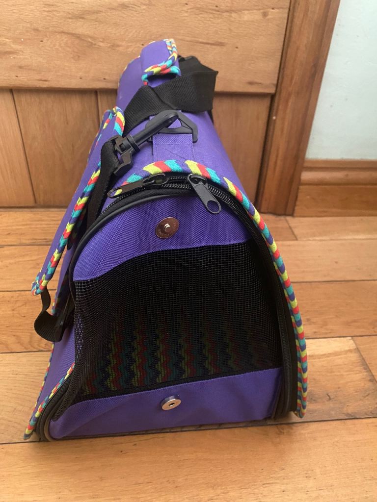 You can use it as a tote bag or shoulder bag with the top handle and adjustable strap. The carrying handles with a pad is very comfortable to hold. Perfect for vet visits, transportation by car, train, plane, etc.