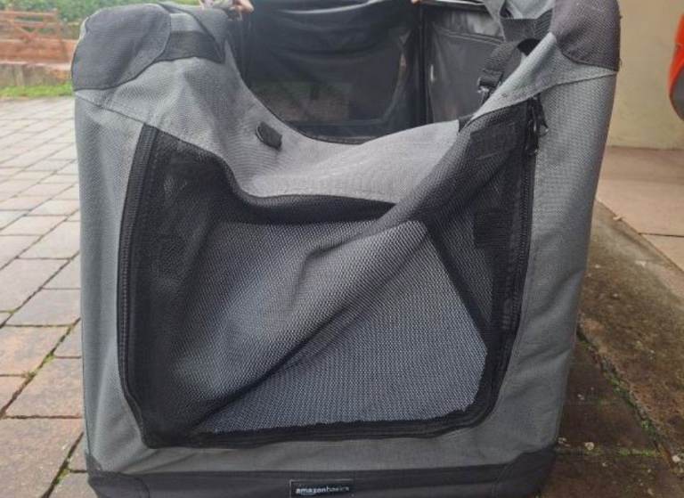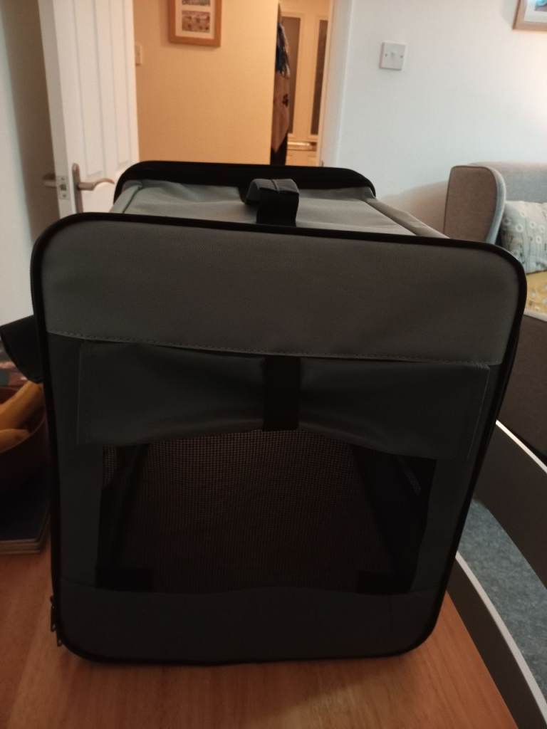 This offer is for a sturdy fabric pet carrier crate in grey.Ideal for transporting your pet in style and comfort, giving them a portable home from home, the carrier is easy to set up, and is lightweight but sturdy with a tubular steel frame.