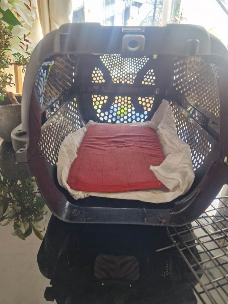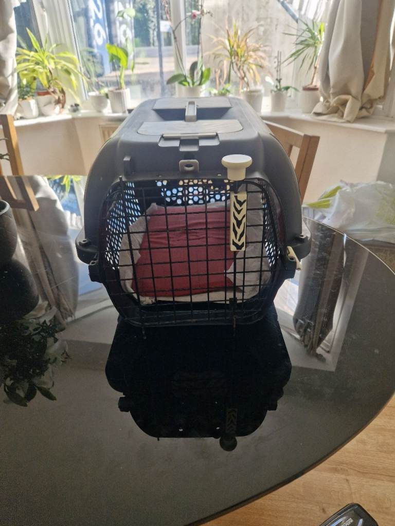 Sturdy and secure pet carrier, ideal for cats or small dogs. Perfect for vet trips or travel.