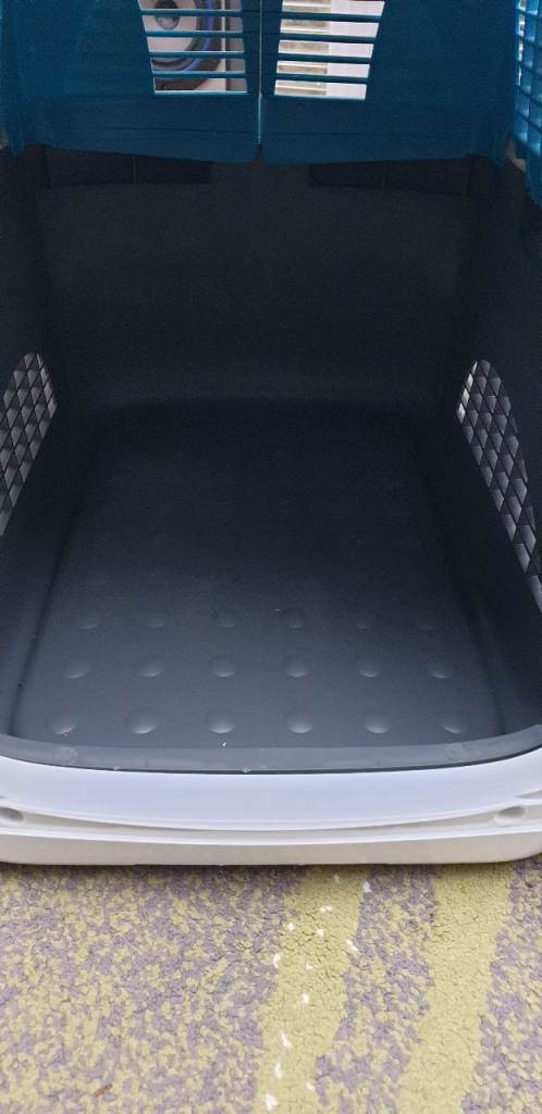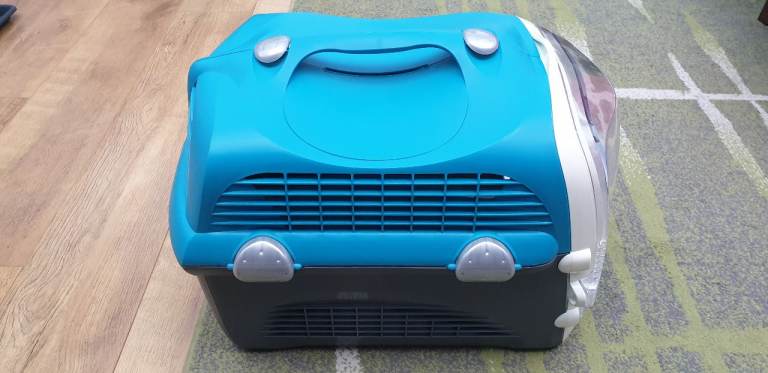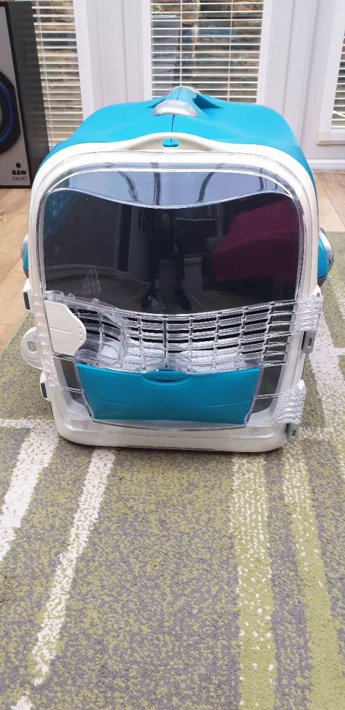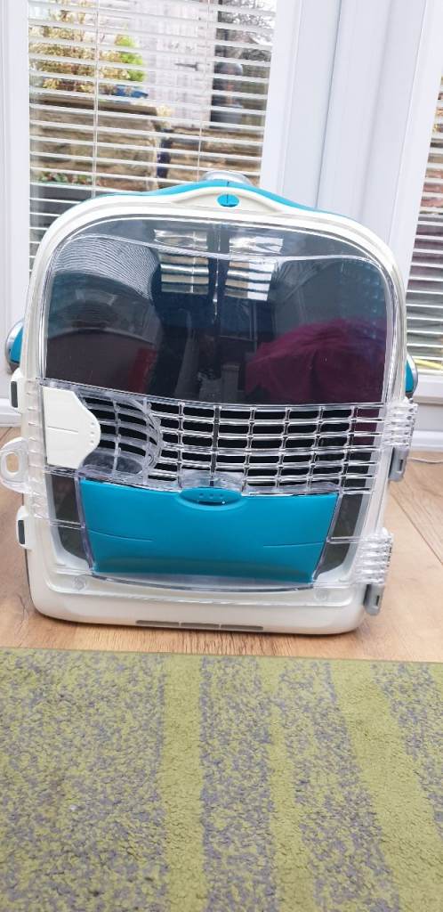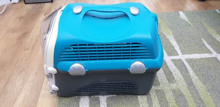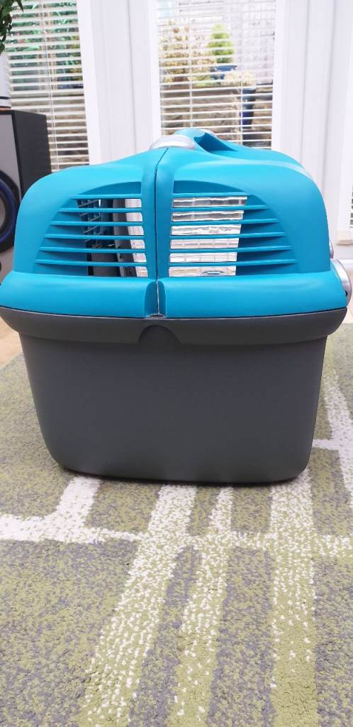 Constructed in hard plastic in Blue, Grey and White. Approximate size: Length 533mm (21"), Width 407mm (16"), Depth 356mm (14"). Pet carrier comes from a smoke free home. Collection only.