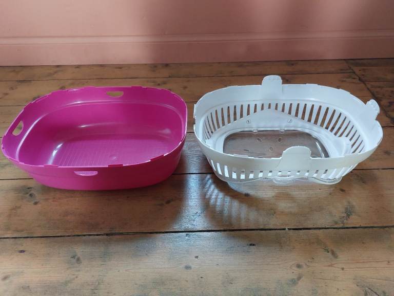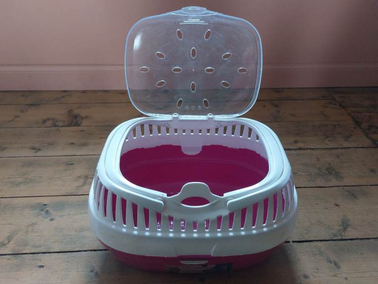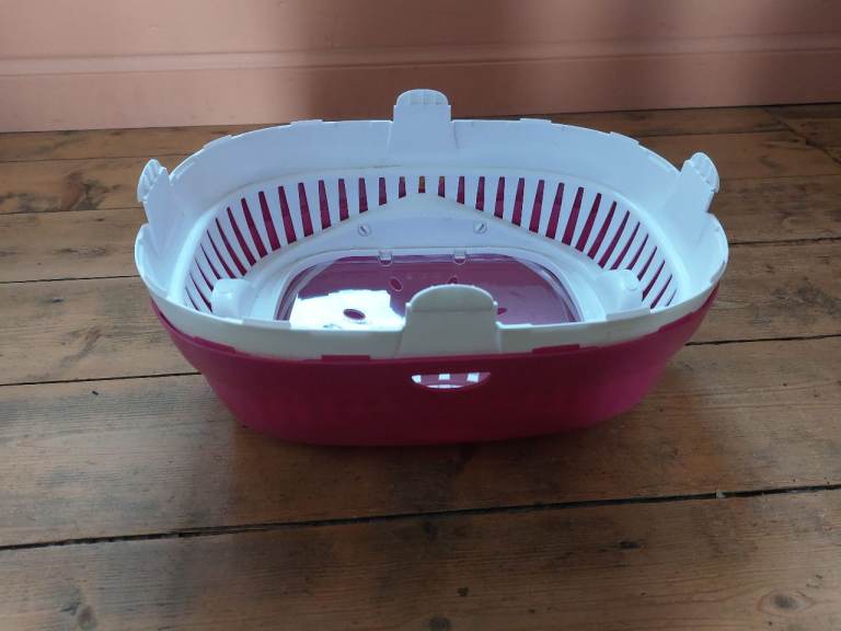 Small pet carrier, suitable for transporting hamster/guinea pig etc. to vet. Separates into two halves for cleaning and storage. Carry handle and access door. Very good condition. £15