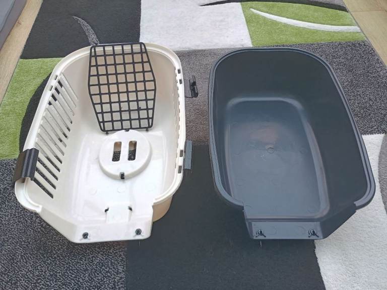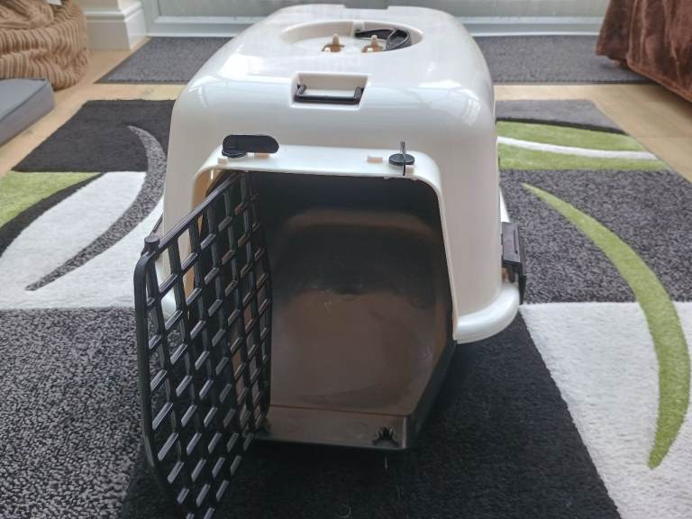 50cm(l) x 33cm(w) x 31cm(h). Been used for a cat, but would also suit small dogs/puppies, rabbits etc.