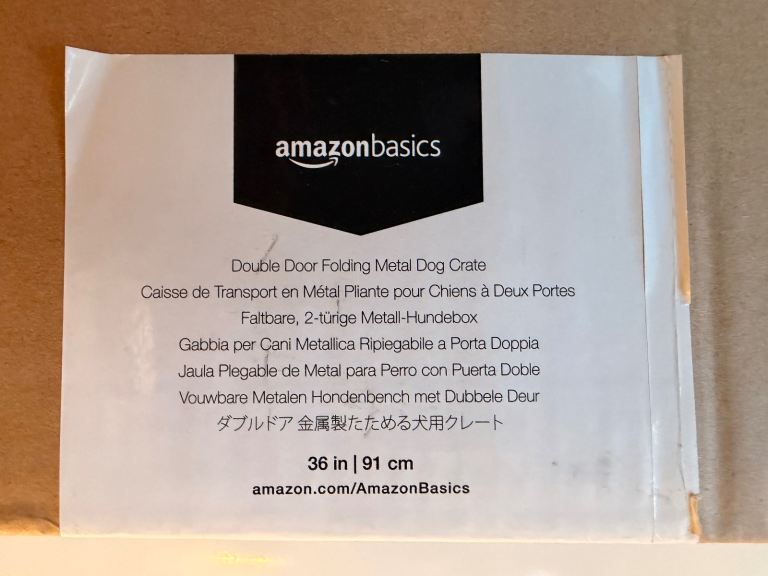 AmazonBasics folding pet crate with double door and removable tray. Barely used (less than two weeks). Must be collected by 6 February.