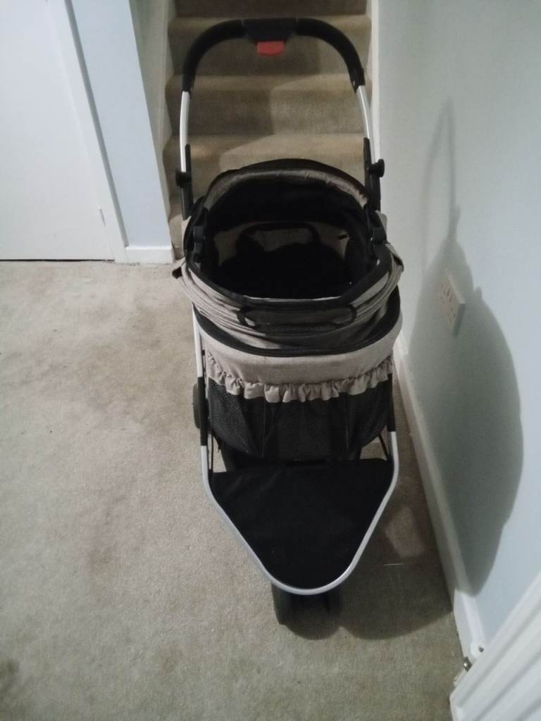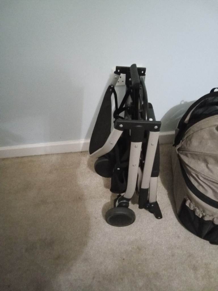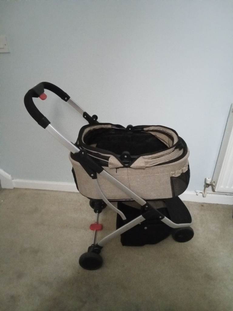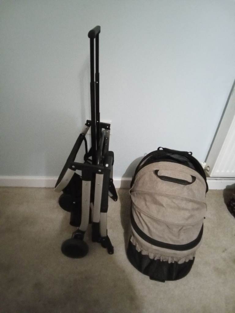 Pet pram and car seat / carrier small and compact , easy pull along when folded and light weight , used for a shitzu for a small time in excellent clean condition . Can deliver local