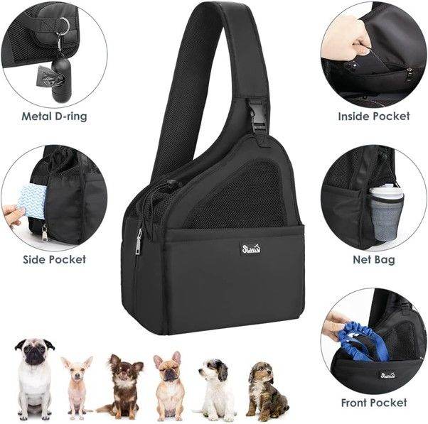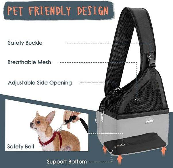 • Safe and Comfortable for Pets --- The dog sling is equipped with a detachable hard plate bottom, plus the breathable mesh, skin friendly fabric, which make sure your pet stay comfort inside. The adjustable safety hook inside the bag can be linked to pet’s collar or harness, preventing pet jumping out accidentally.