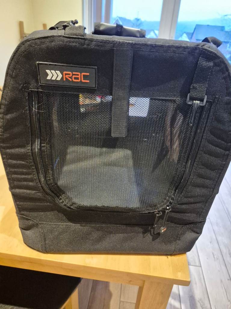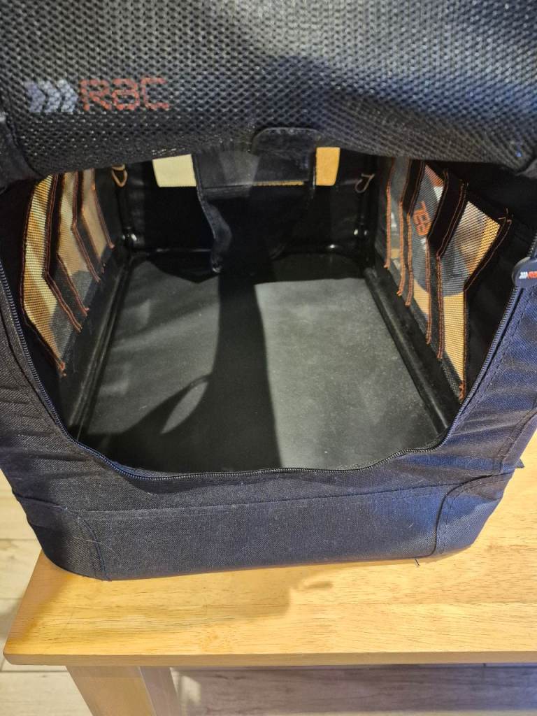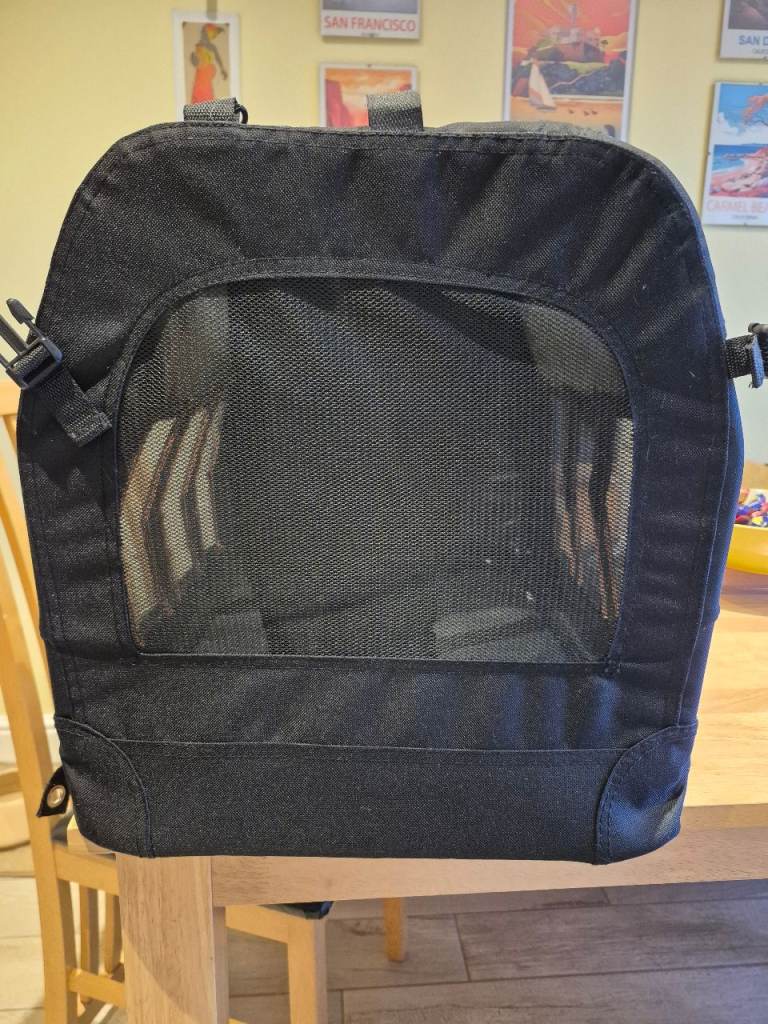 Foldable, black pet carrier for medium pets, only used a couple of times for our puppy, Excellent condition, bought from Pets at home for £48. H41xW40xD60cm