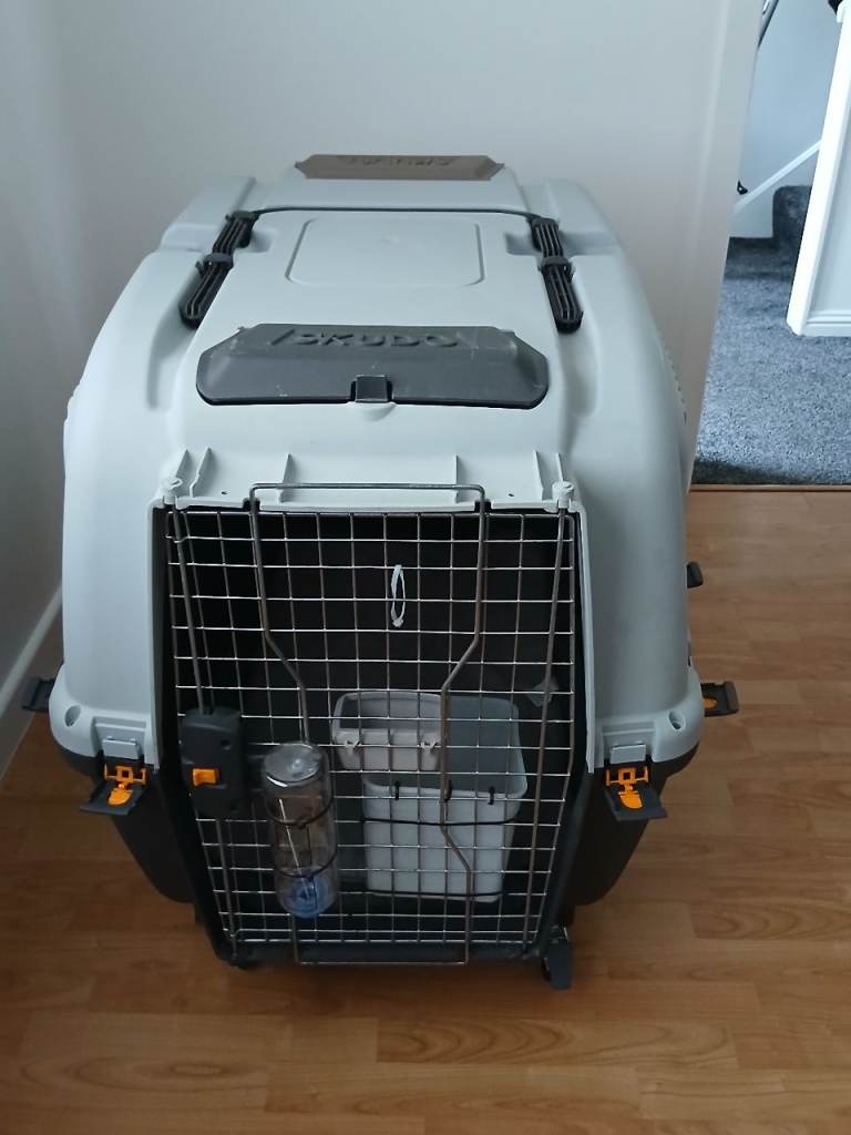 Skudo 6 Airline Approved Dog Carrier, Large, Grey with 4x wheels+ a lot of extra (spare clamps, spare bolts and nut, blanket, watering trough, spare wheel mounts ) all clean and dry, used only twice (trip of my border collie for holiday and back :-).
