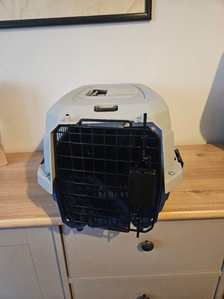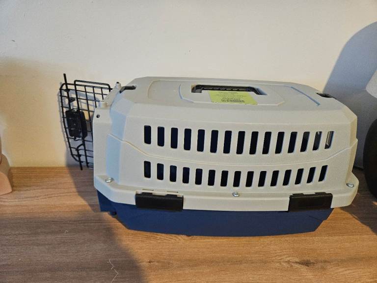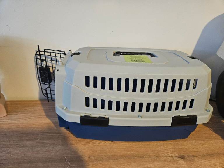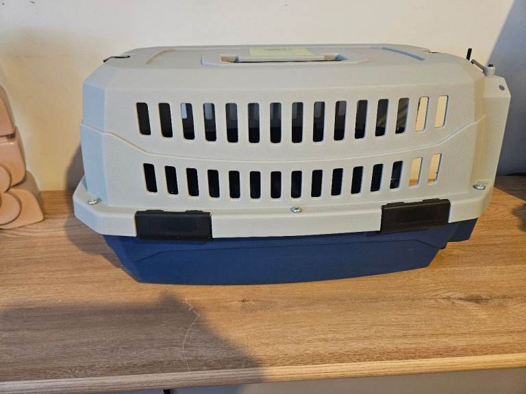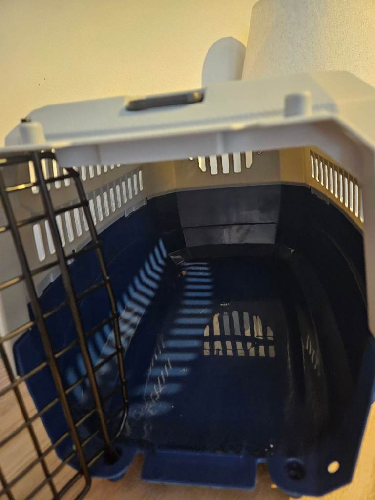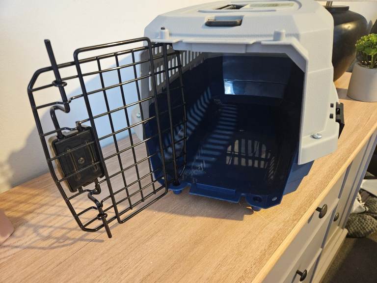 Very good condition, Grey and dark blue small pet carrier Suitable for small sized small dog or small to medium cat.