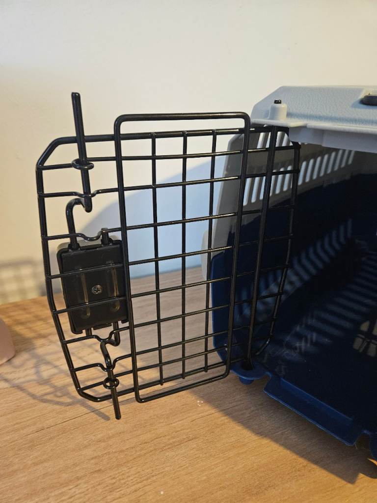 The wire door is designed to open on the front to allow easy entry/exit for your pet. It is lightweight, well ventilated and easy to clean and is suitable for carrying small to medium sized cats, small dogs and other small animals it has a plastic handle and clips into place round the sides.