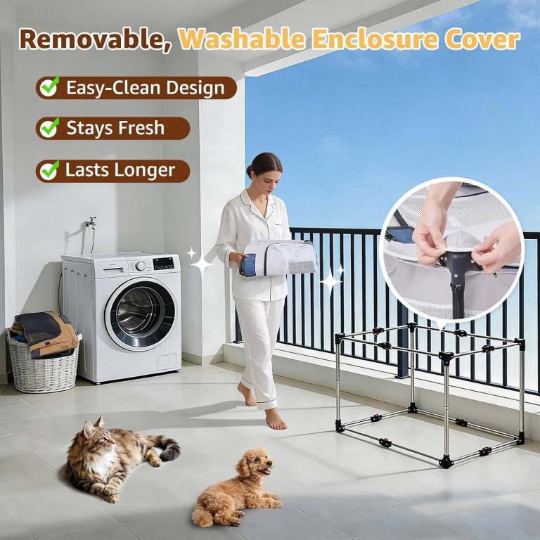 Steel Frame Dog Playpen, Foldable & Washable Puppy Play Pen for Small Medium Dogs Indoors Outdoor, Heavy Duty Dog Cage with Removable Sturdy 690D Cover, Portable Dog Cage for Puppies & Cat, 81x61x56cm