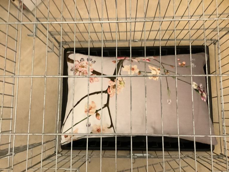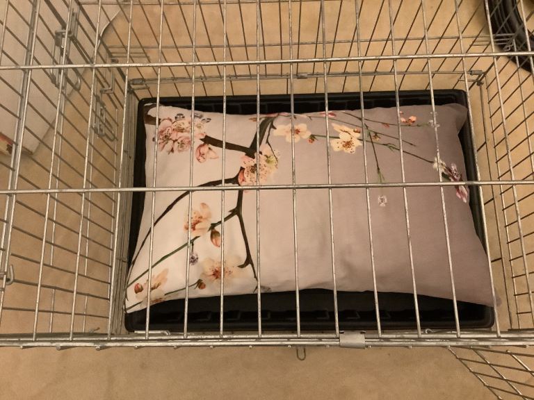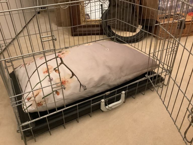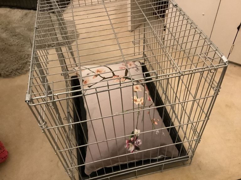 Puppy/dog crate, in used but good condition. Fully collapsible for with handle for transport and storage.