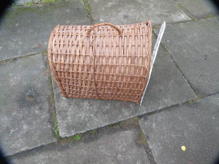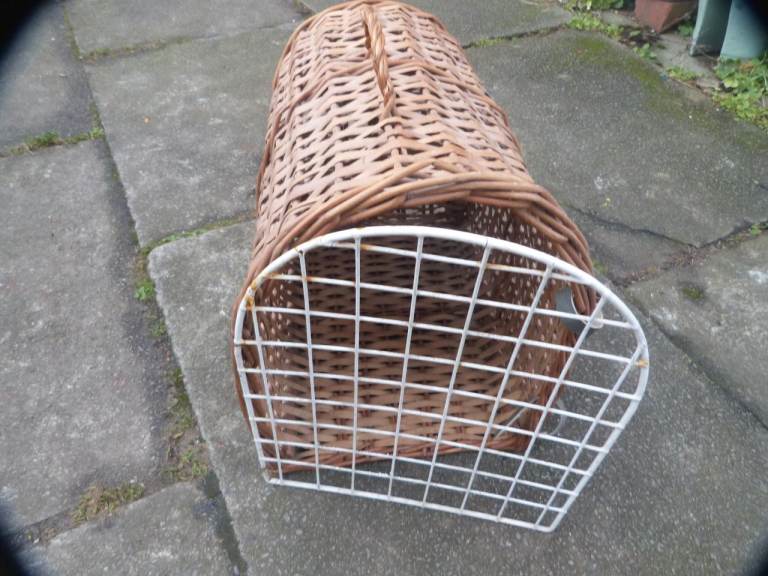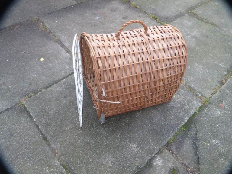 Wicker cat basket. In good condition. Wire door could do with cleaning up a bit, looking a little aged. We have no cats now so this needs a new home.