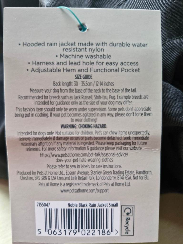 Selling a NEW (small) black water repellant dog jacket for a small pup. Has a hood and a small pocket. Still has price tag attached, as it was never used. We had two and only used the one. Selling for £15 o.n.o. Description in photo. Collection from Currie.