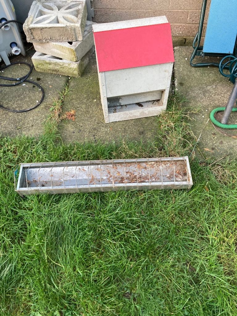 £100: Chicken coop with removable tray for cleaning and nesting boxes. Needs some cosmetic tlc but fully functional. Has chicken guard automatic door opener- battery operated, on a timer not light levels, will need new batteries (AA I think).