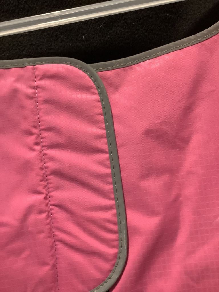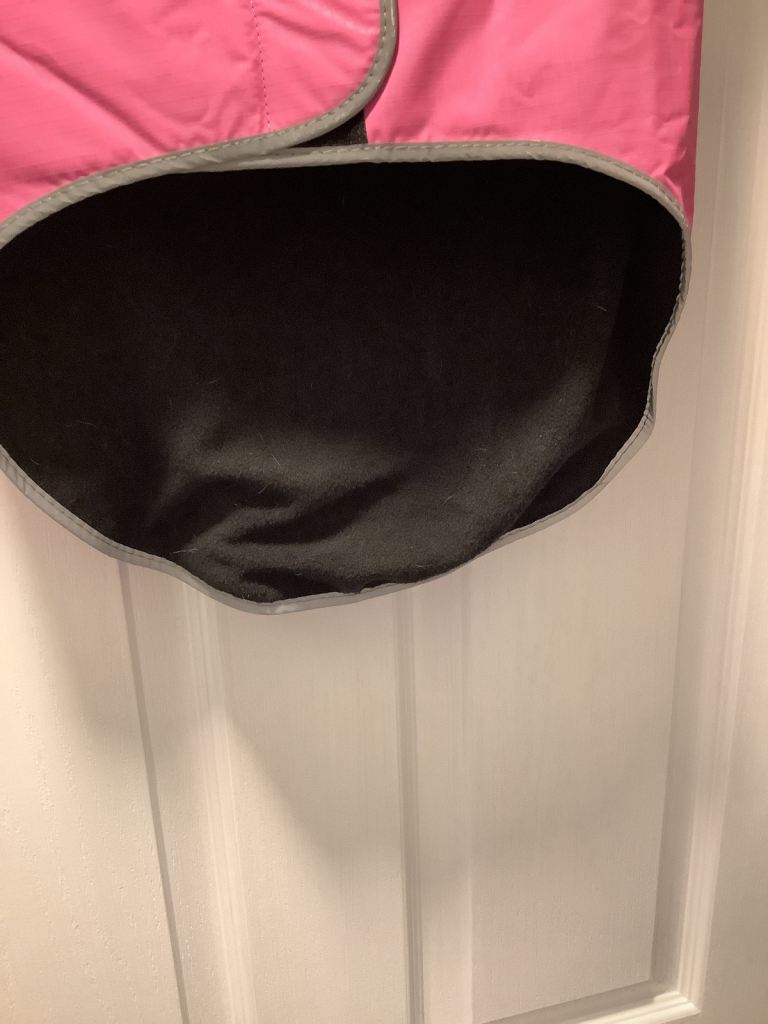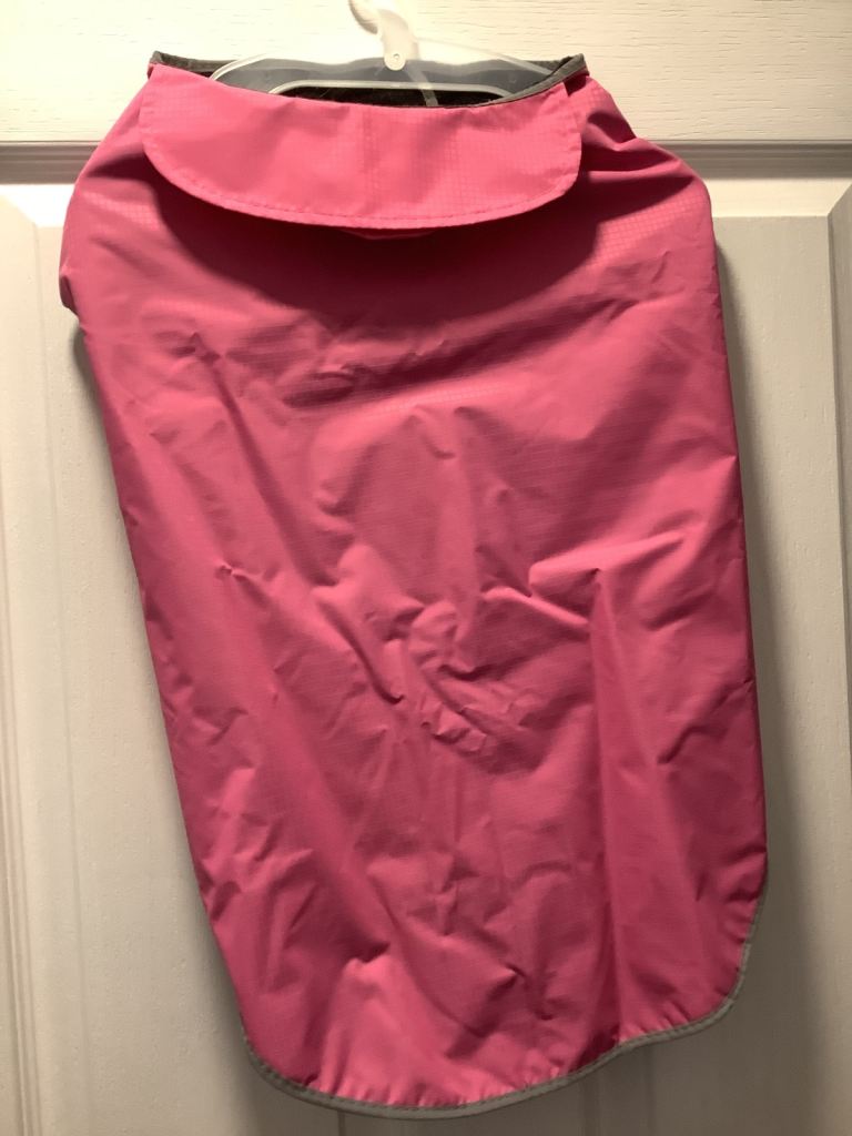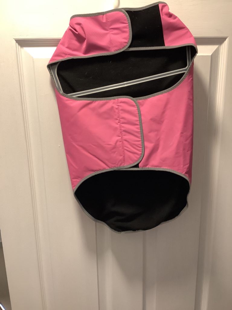 This coat is a large and fits a Boxer size medium dog. This is brand new with no tags. It has been on one of my dogs once and fitted really well. The problem is that I walk my dogs on a harness and it only has a hole through for a collar. It cost me £17 off Amazon so it’s a bit of a bargain!