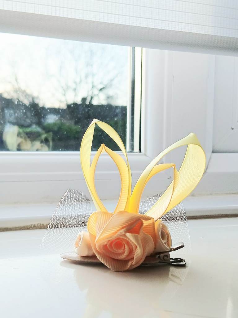 Handmade clip / grip made from satin ribbons, this Spring Easter Bunny clip is the perfect accessory this season.