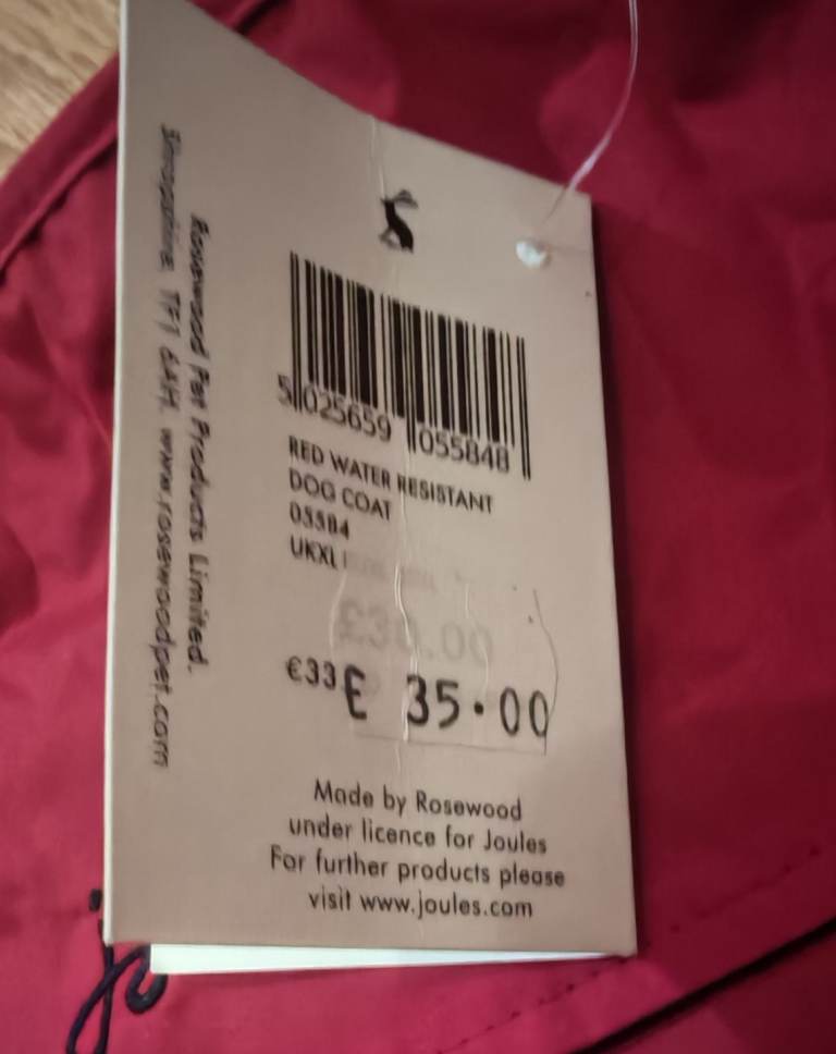 Joules Outwit the Weather water resistant dog coat XL red, brand new. Never used