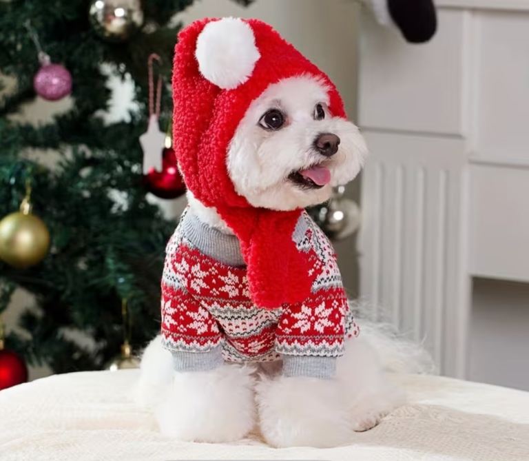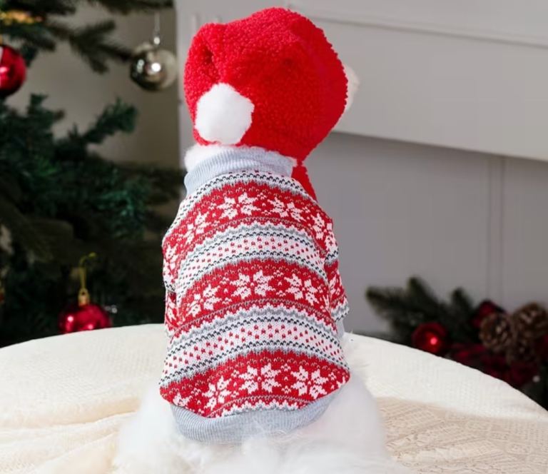 Posting for 10+ yearsSmall dogs .Poppies.Cats Pullover sweater snowflake pattern and detachable hood