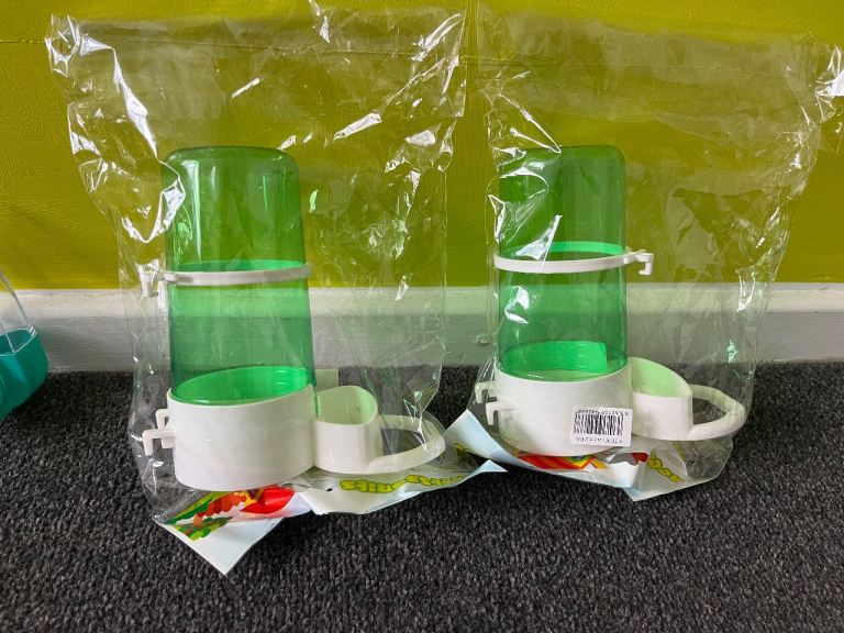 Tow bird’s food pots new never been used in good size and suitable for food and water.