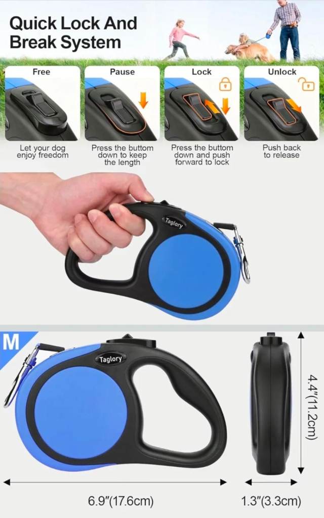 1. Taglory Retractable Dog/Cat Leash 5 m, suitable for Small and Medium Dogs Up to 20 kg, Blue.