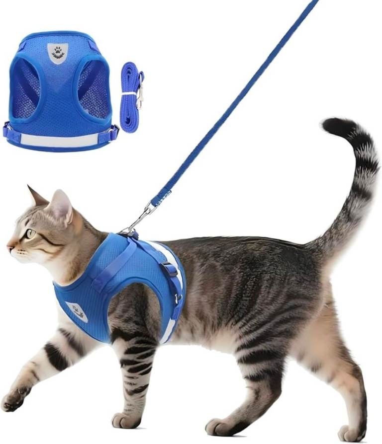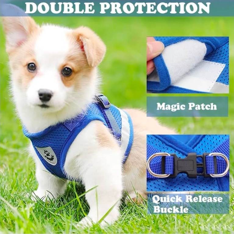 2. Soft Mesh No Pull Harness for Dogs/Cats (Blue, Large). No-Choke design. Two layers of security with double stitched fabric, strong hook and loop fastener closure and secure buckle. Durable metal D-rings. Fully adjustable. Reflective design makes it visible in low light conditions improving safety when walking at night.