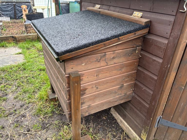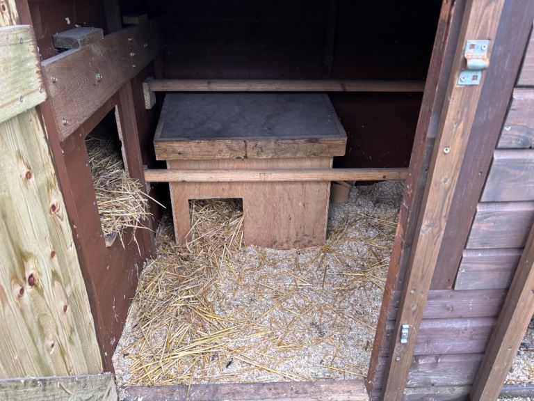 Bespoke timber chicken coop for sale. Suitable for up to around 8 birds if used with a run. Nest box on the side for laying. Buyer must be able to dismantle and transport. Cash on collection from Hucknall.