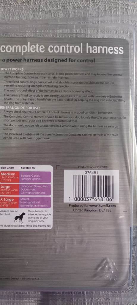 Size XL Complete control harness suitable for Bull Mastiff, Rottweiler, Newfoundland & similar sized breeds.