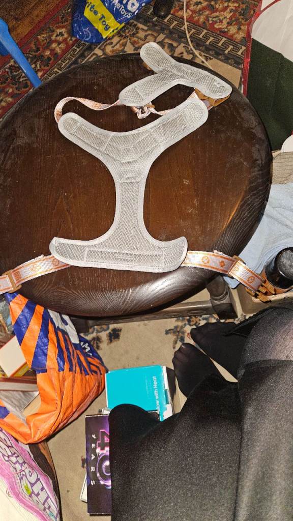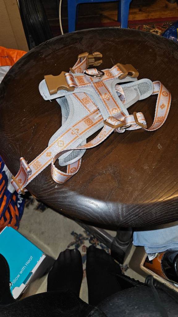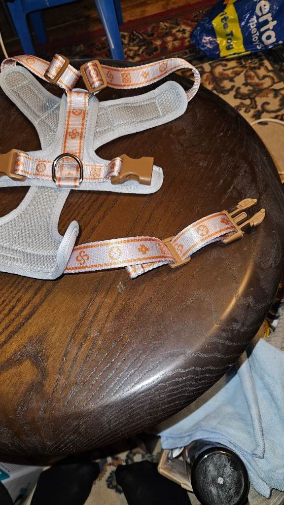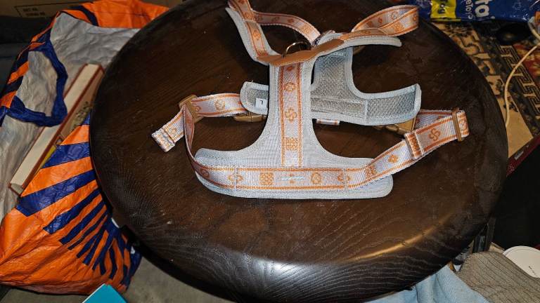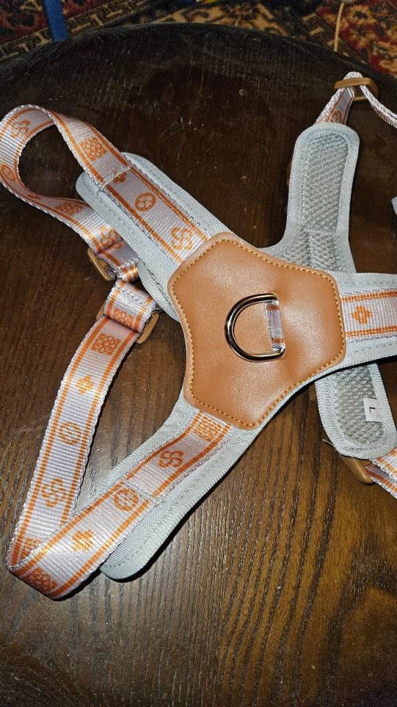 I bought this harness for my dog but when it came I thought that it will not suit him one bit,and the colours are not for him,so I didn't get much time to return the harness so I thought I would put it up to sell,it does have a very chunky d ring for the lead,it is large size but you can loosen or tighten it it depends on the size of the dog.