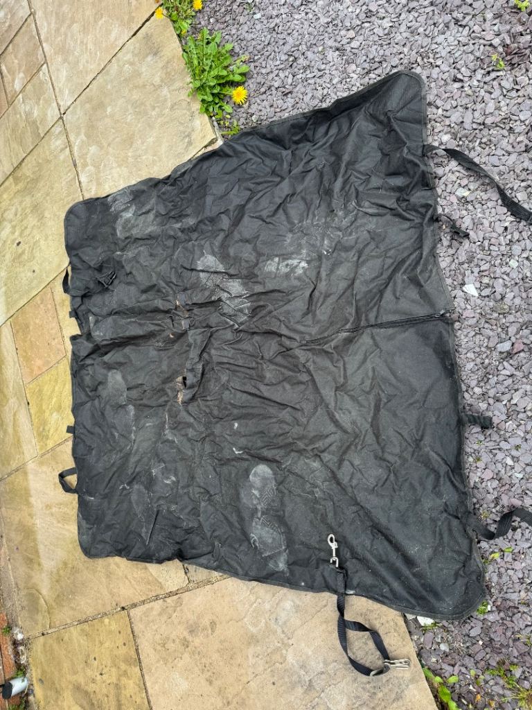 Double seat cover which attaches with straps and Velcro to a back seat or bench seat off a van. Comes with a seat belt clip for harnessing the dog when in motion