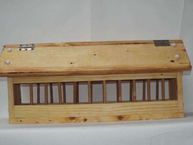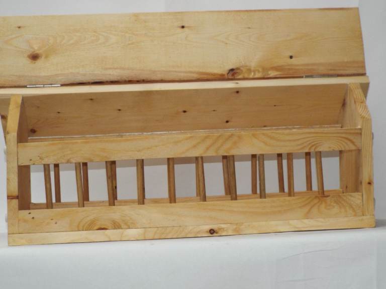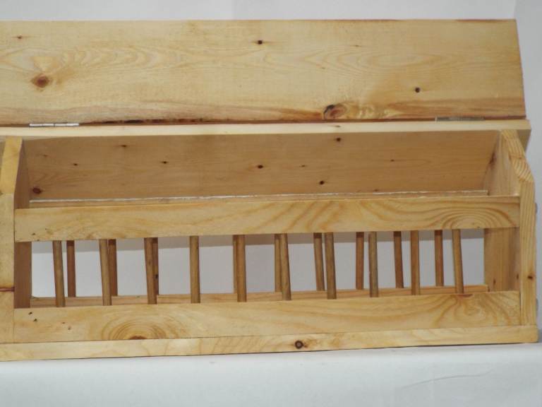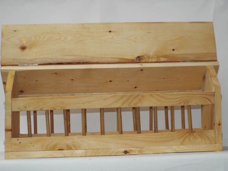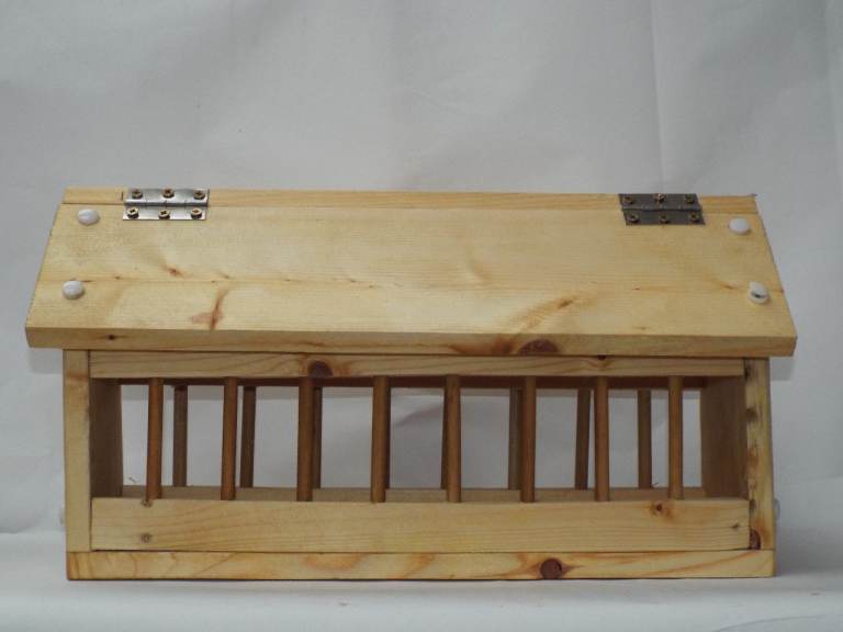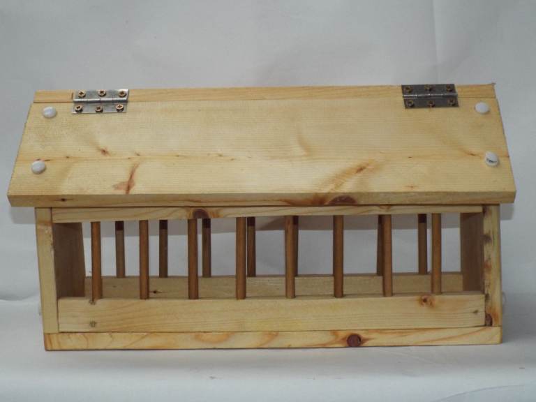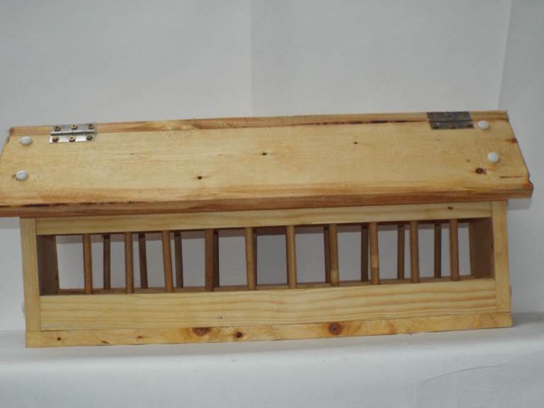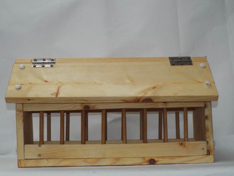 Handmade wooden pigeon, chicken feeder 60cm long 13cm width width one side open roof multi slot containers different sizes available 45cm 18£ 60cm20£ 95cm 25£ the thickness of the material is three-quarters 3/4 treat with natural wood protection