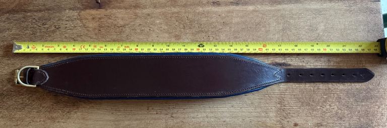 I did try and make this work with my greyhound, so it was used for 2 weeks, but it was just a bit too big. The leather has started to soften up.