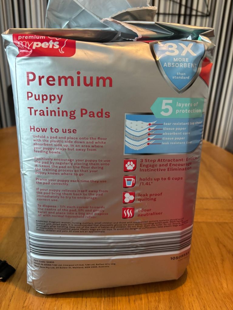 Puppy training pads, small collar, small harness, puppy carrying sling & 30m training lead