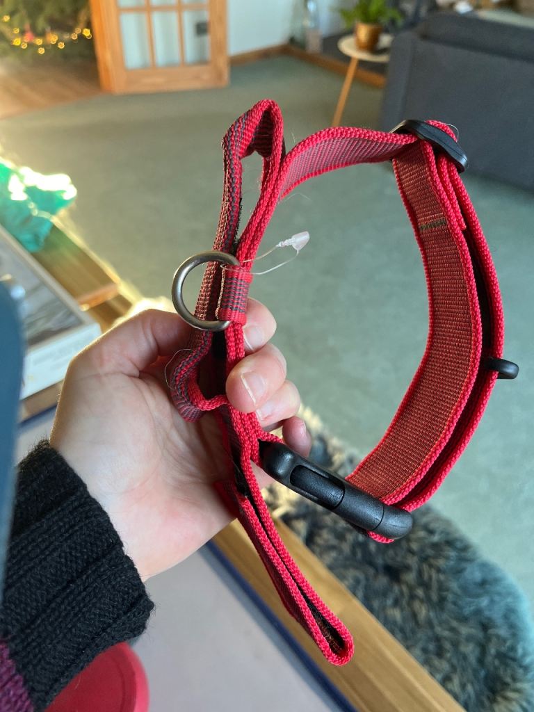 Martingale style rolled leather collar for small dog, good condition