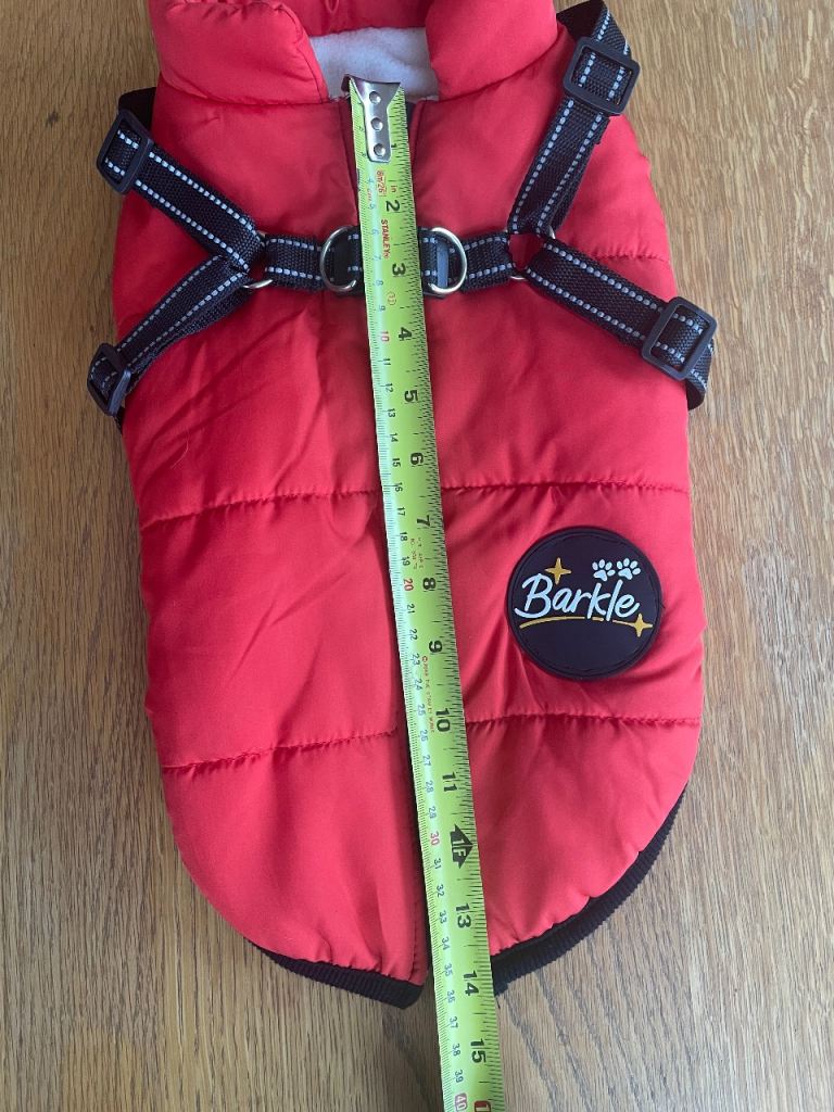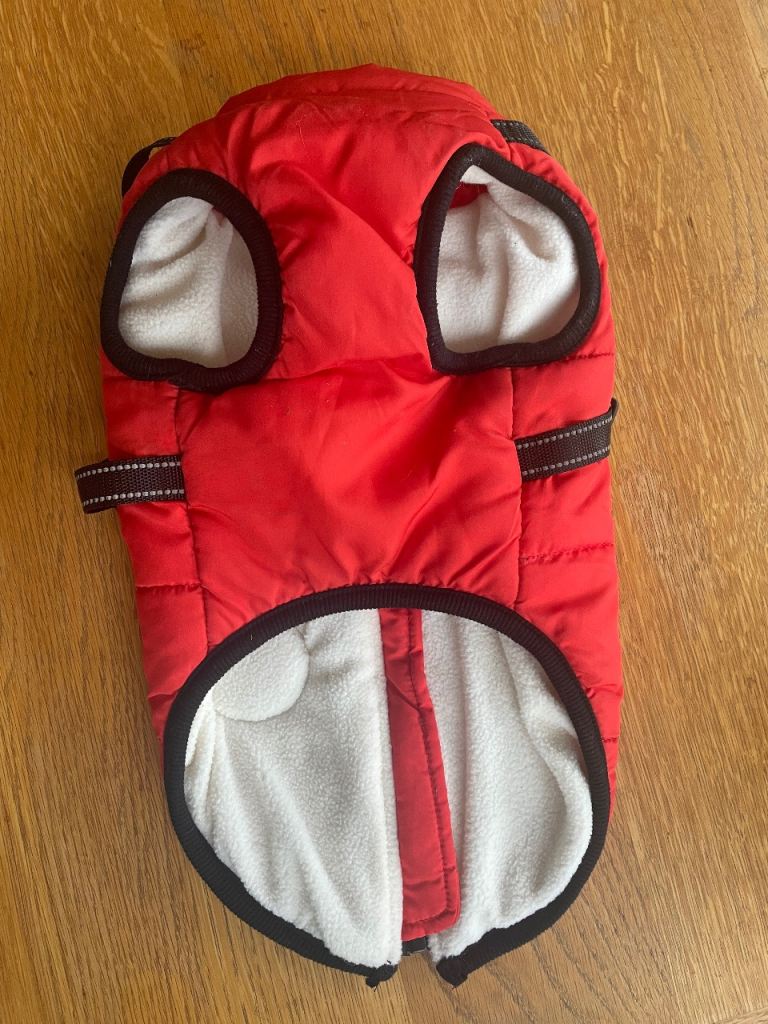 Barely worn as our young rescue dog soon grew out of it. It fitted him when he was 6/7kg but when he was being fed properly and also grew a bit it became too tight (he is now 10kg).