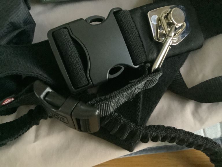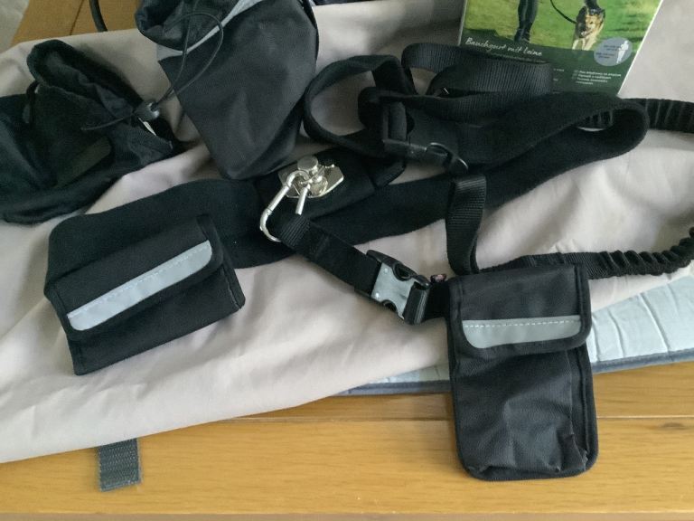This is a new Trixie dog lead. A waste fastening belt with front leash attachment.pouches for treats