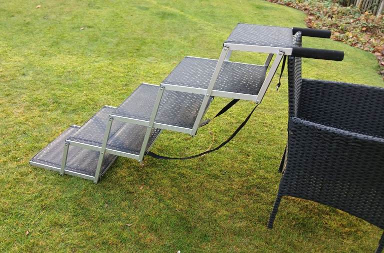 Nice big steps and very sturdy , foldable with a carry handle. Suitable for large dogs