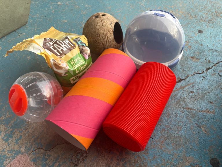 Hamster cage been used like new, was from pets at home originally £50 for cage, toys are new never used and half bag bathing sand