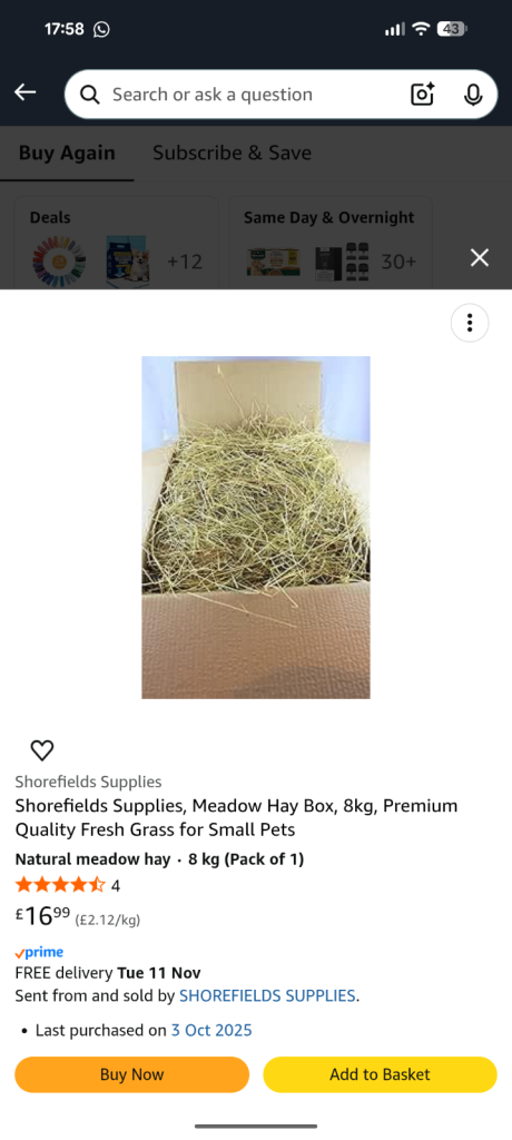 Meadow Hay bought for a craft project for Halloween but didn't use it. Collection only