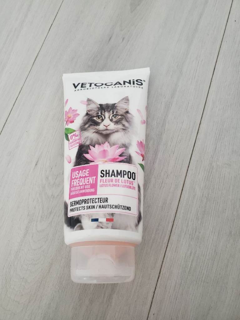 Shampoo whith nice small towel and a leech. All new our cat never liked to be washed or attached.
