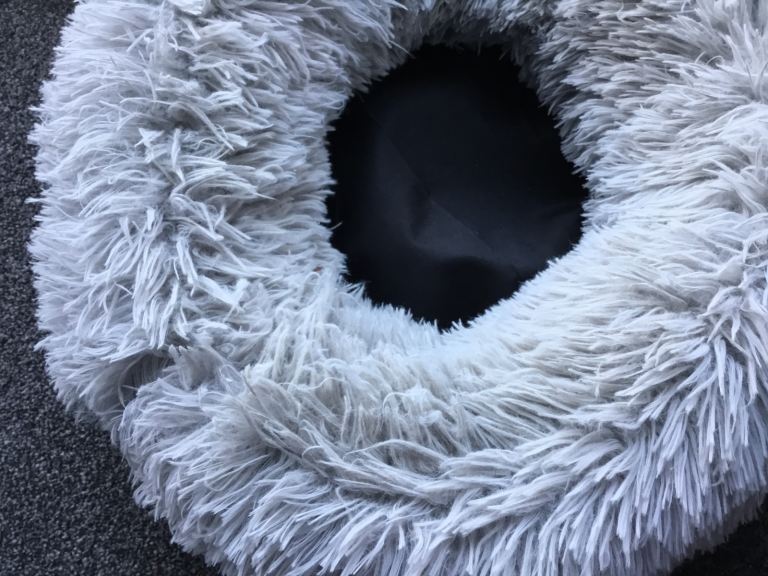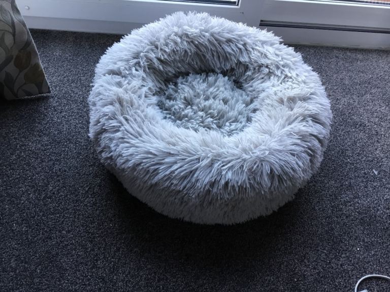 As new lovely fluffy light grey cat bed , fully washable ,the bottom cushion cover comes off for washing , also the whole lot can go in the wash machine ,which it has and it’s like new condition only £5 pick up Newhaven