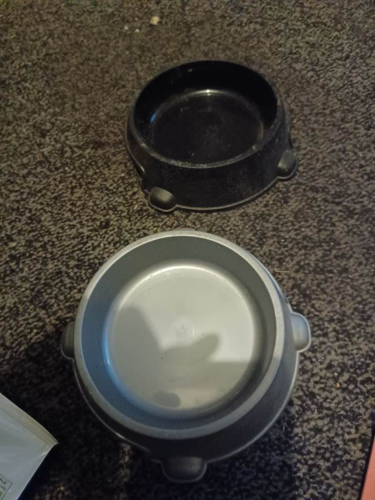 Cat accessories including mat, 2 bowls, toys, collar, poop scoop
