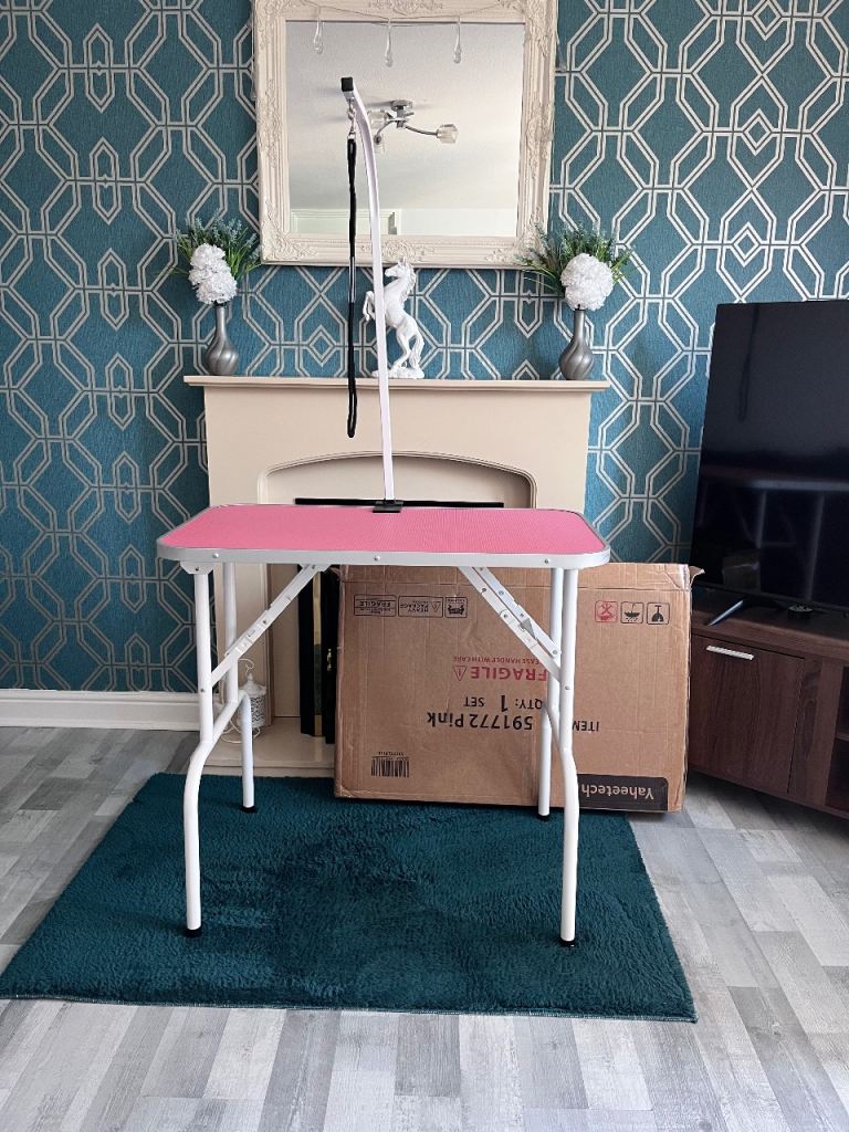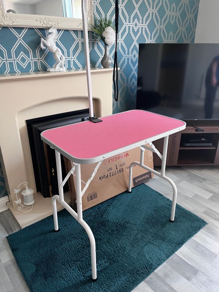Pink dog grooming table, perfect for grooming small dogs, only used twice no longer needed will come with box as new, buyer to collect from noddle hill way.