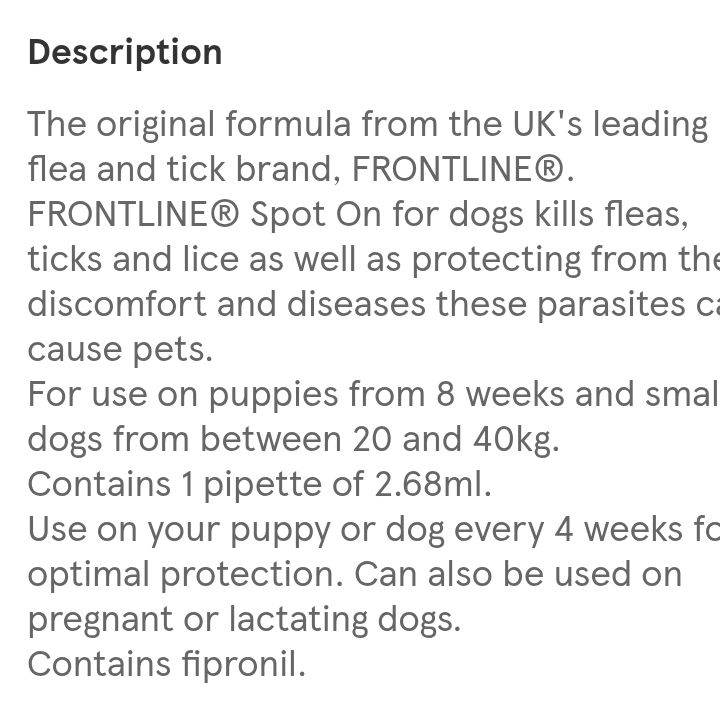 frontline spot on dog 20-40kg 1 pipette