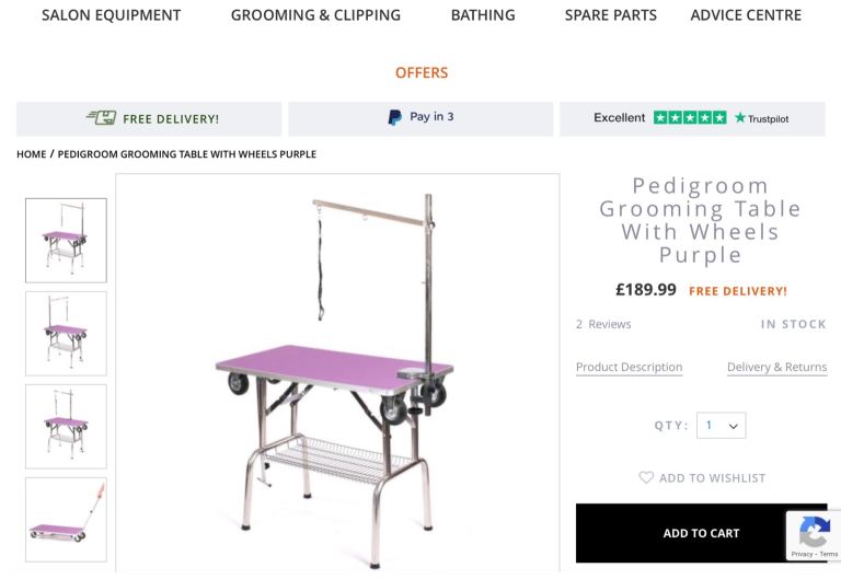 Strong wheels mean its ideal for mobile groomers and for taking to shows.
