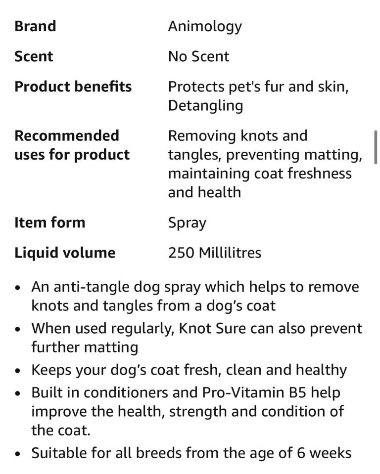 Posting for 12+ yearsAnimology Knot Sure (Anti-tangle Dog Spray)