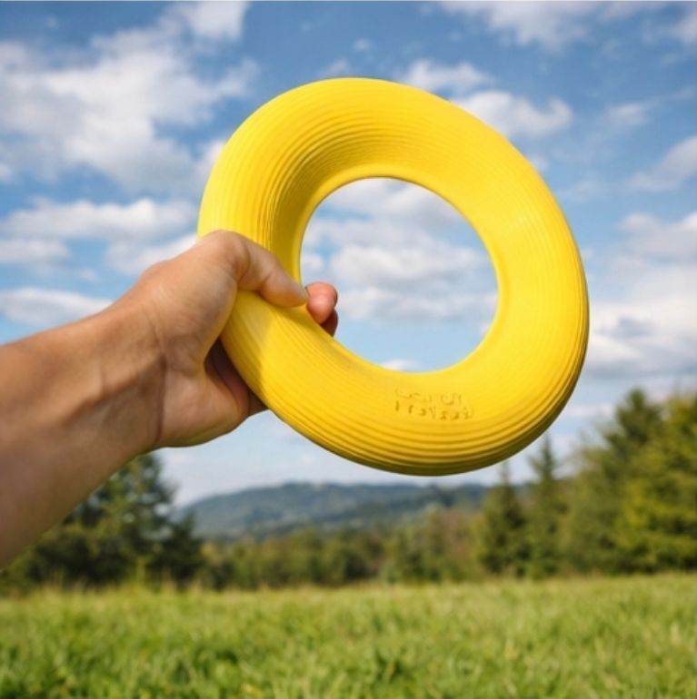 Durable, lightweight and easy for dogs to grab, this ring-style frisbee is perfect for fetch at the park, beach or backyard. The textured design makes it comfortable to hold and easy for your dog to pick up.