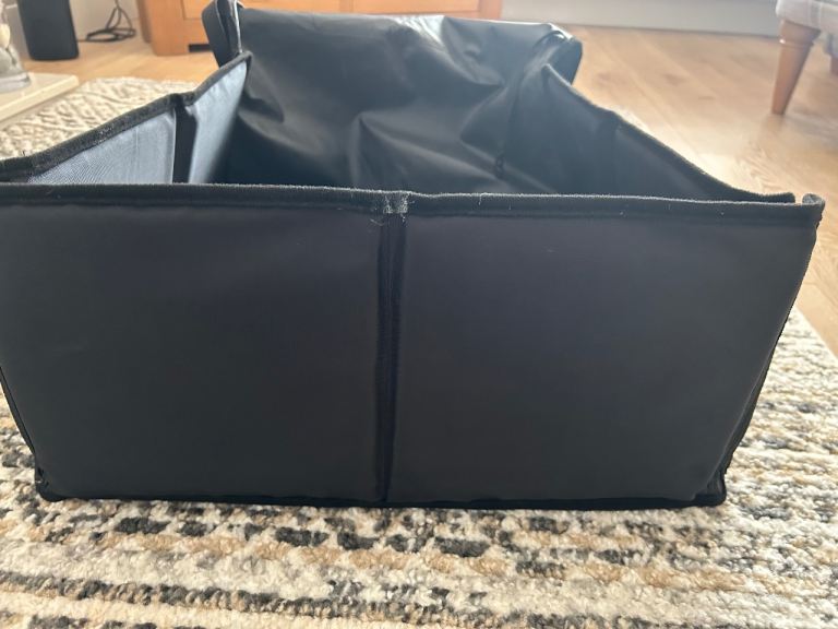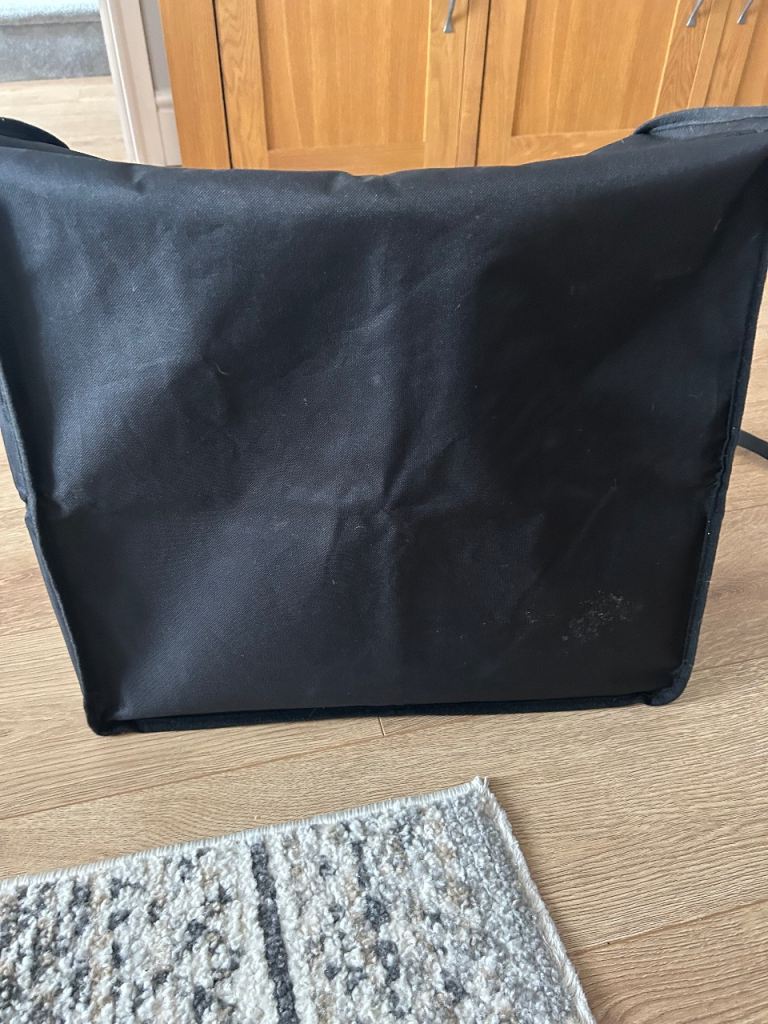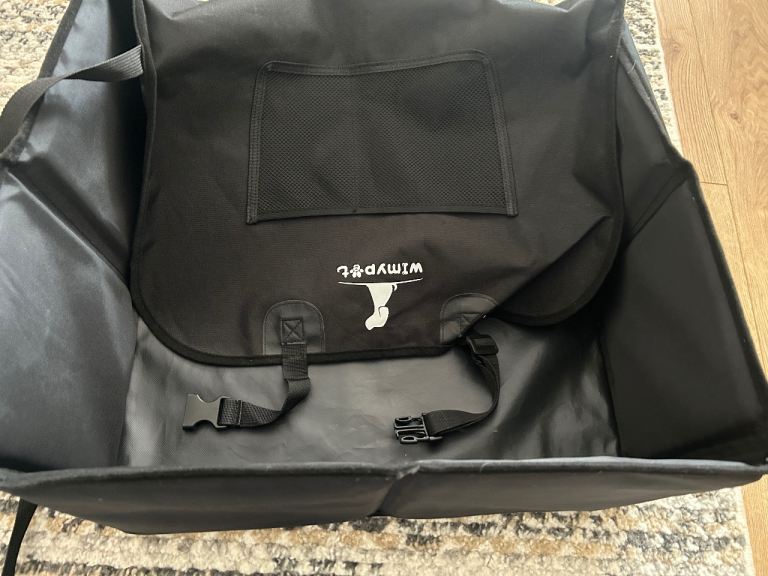 Folding dog carrier perfect for safely transporting dog and keeping car seats clean